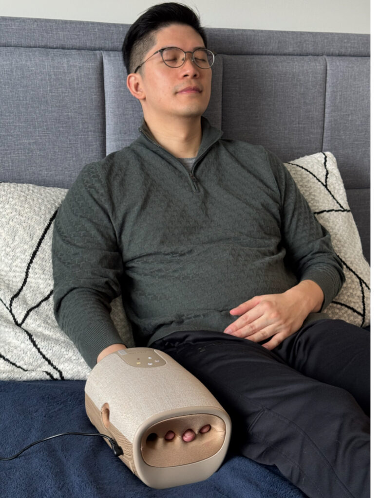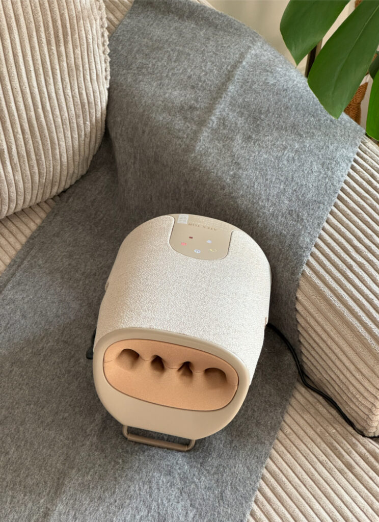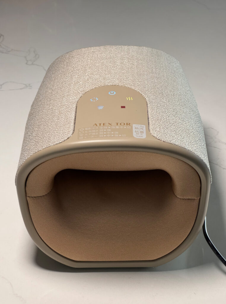 來自日本ATEX TOR PRO-48,一開始像是按摩師傅和用手技和你打招呼,感受到溫柔的包覆感,接著開始各別部位的按摩,從指尖、掌心到手腕,層層釋放壓力; 360 度環繞式指部按摩讓我驚艷的地方,就是它能完整包覆每根手指,加熱功能發威後,環繞式加熱幫助循環體驗更加升級。